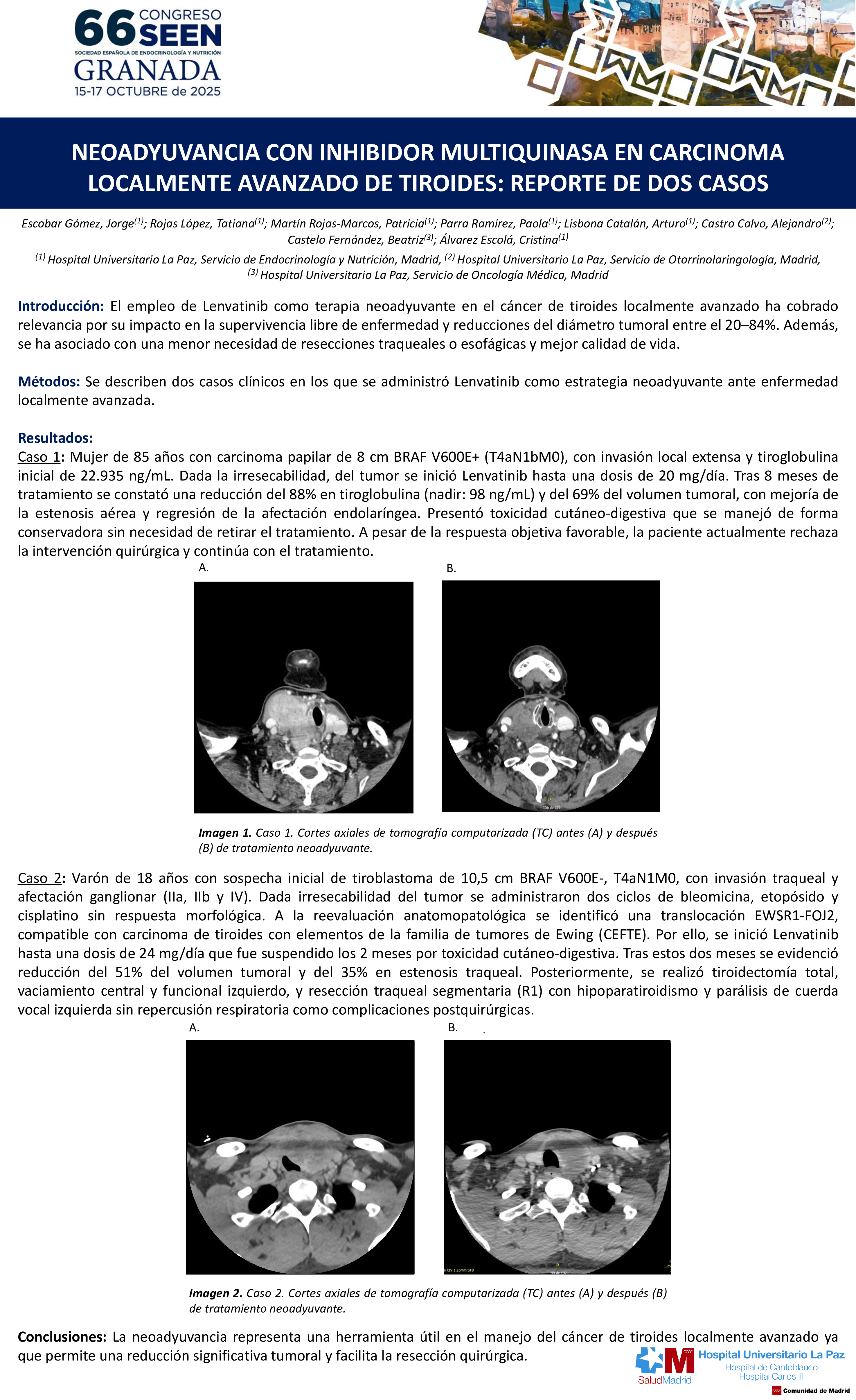 Jorge Escobar Gómez; Tatiana Rojas López; Paola Parra Ramírez; Patricia Martín Rojas-Marcos; Arturo Lisbona Catalán; Beatriz Castelo Fernández; Alejandro Castro Calvo; Cristina Álvarez Escolá